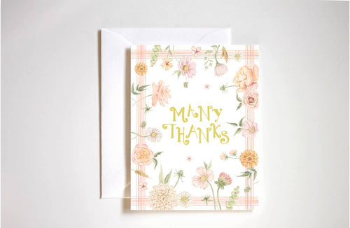 Many thanks whimsical floral thank you card