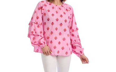 Mudpie Trenton Printed Pink Long Sleeve Top