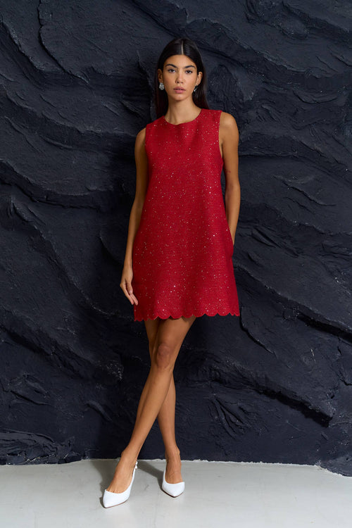 Sequin Scoop Back Structured Shoulders Dress: Black / S