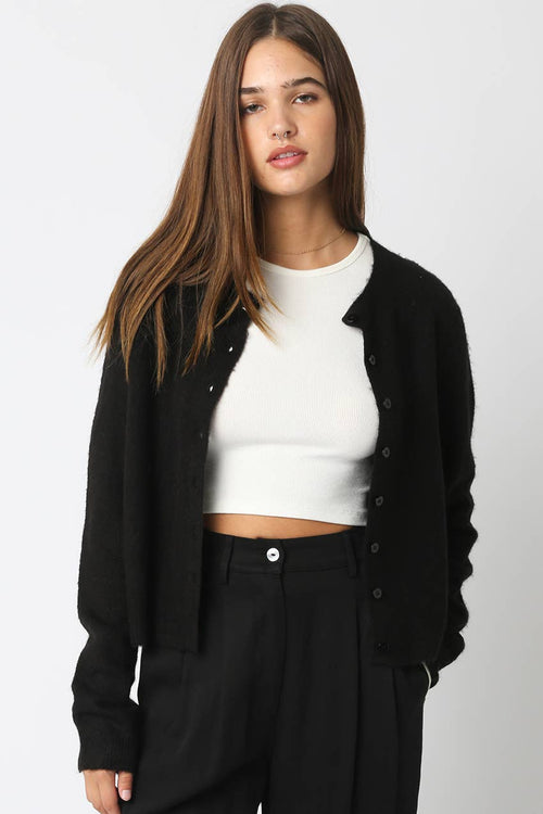 LE LIS - SCALLOP EDGE SWEATER CARDIGAN: White / S